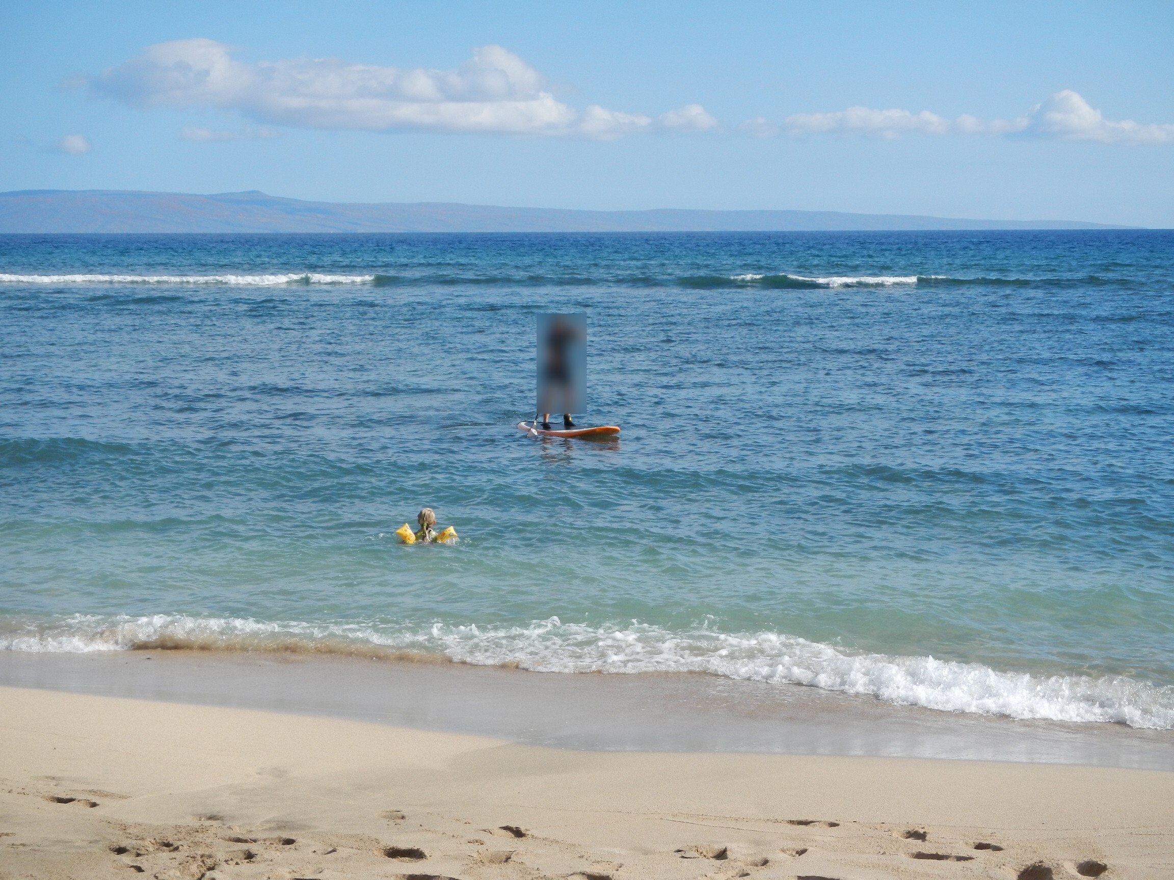 Toute la famille a pris ses premières micro-vagues en SUP pas très loin de là, à Thousand Peaks (aka Papalaua Beach) où il y avait pas mal de panneaux de danger pour les requins.