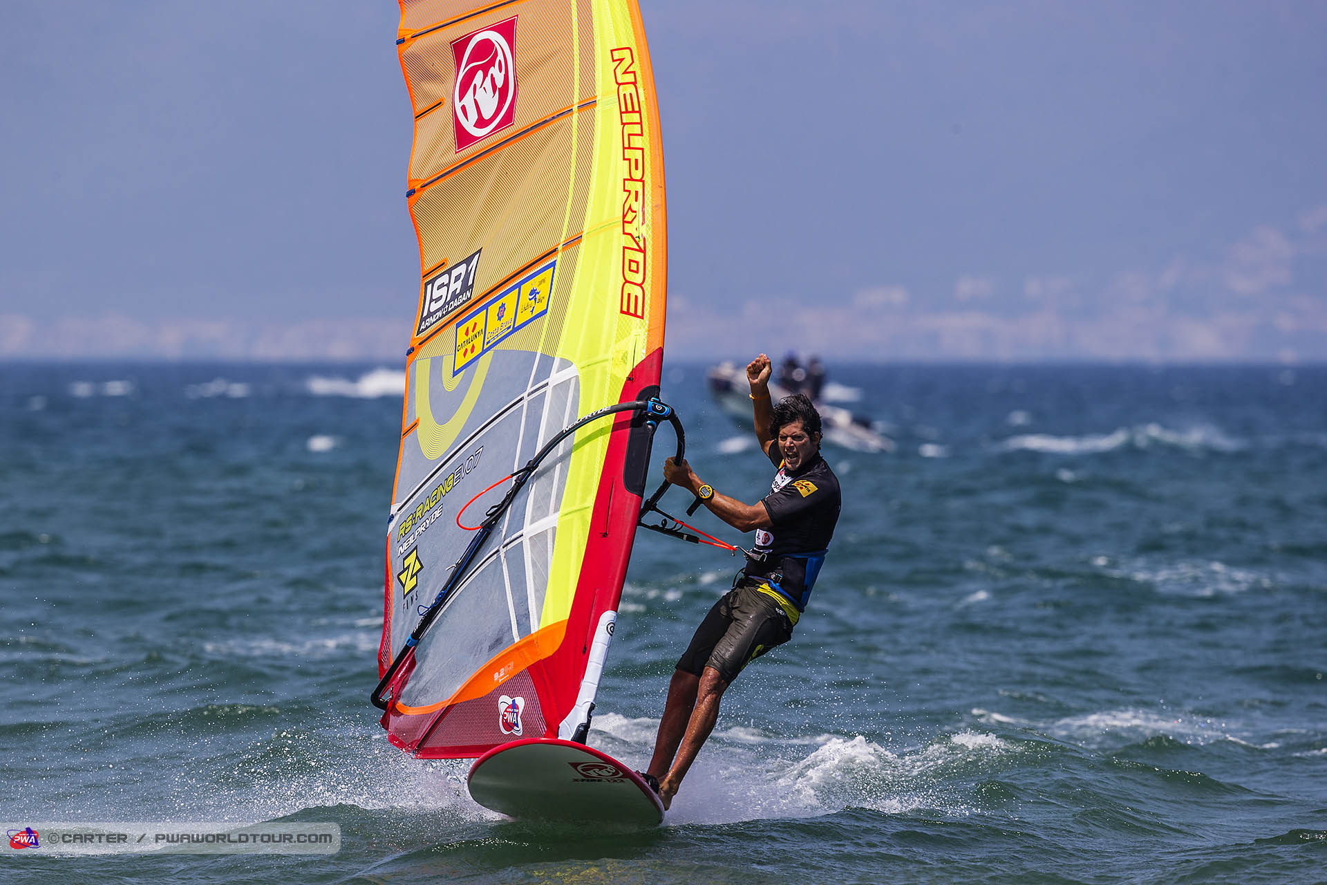 Le thermique de Rosas a montrer le bout de son nez hier en Costa Brava pour la seconde journée de compétition. 12/18nds sur le parcours et la victoire de manche pour Aaron Dagon, Matteo Iachino et Antoine Albeau. Nicolas Warembourg prends une très belle 4ème place. C’est une belle performance pour Warembourg qui s’illustre depuis quelques années sur le Défi Wind et qui ne participe habituellement pas au circuit PWA!