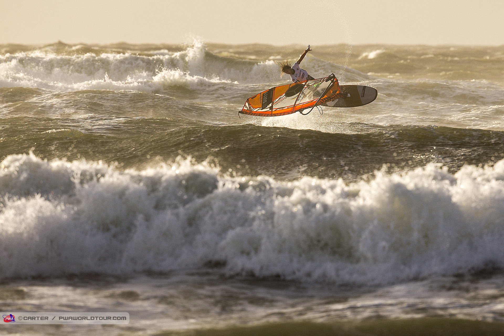 C’est incontestablement la vague qui a occupé le devant de la scène cette semaine à Sylt avec la double élimination vagues hommes et femmes. Les conditions ont été parfois dures et musclées vient onshore aussi par moment de la compétition. On peut regretter tout de meme que l’organisation de la PWA n’est pas trop chercher a profiter de certains creneaux en tribord avec même du side pendant quelques heures… a croire qu’il faut courir babord ou rien?