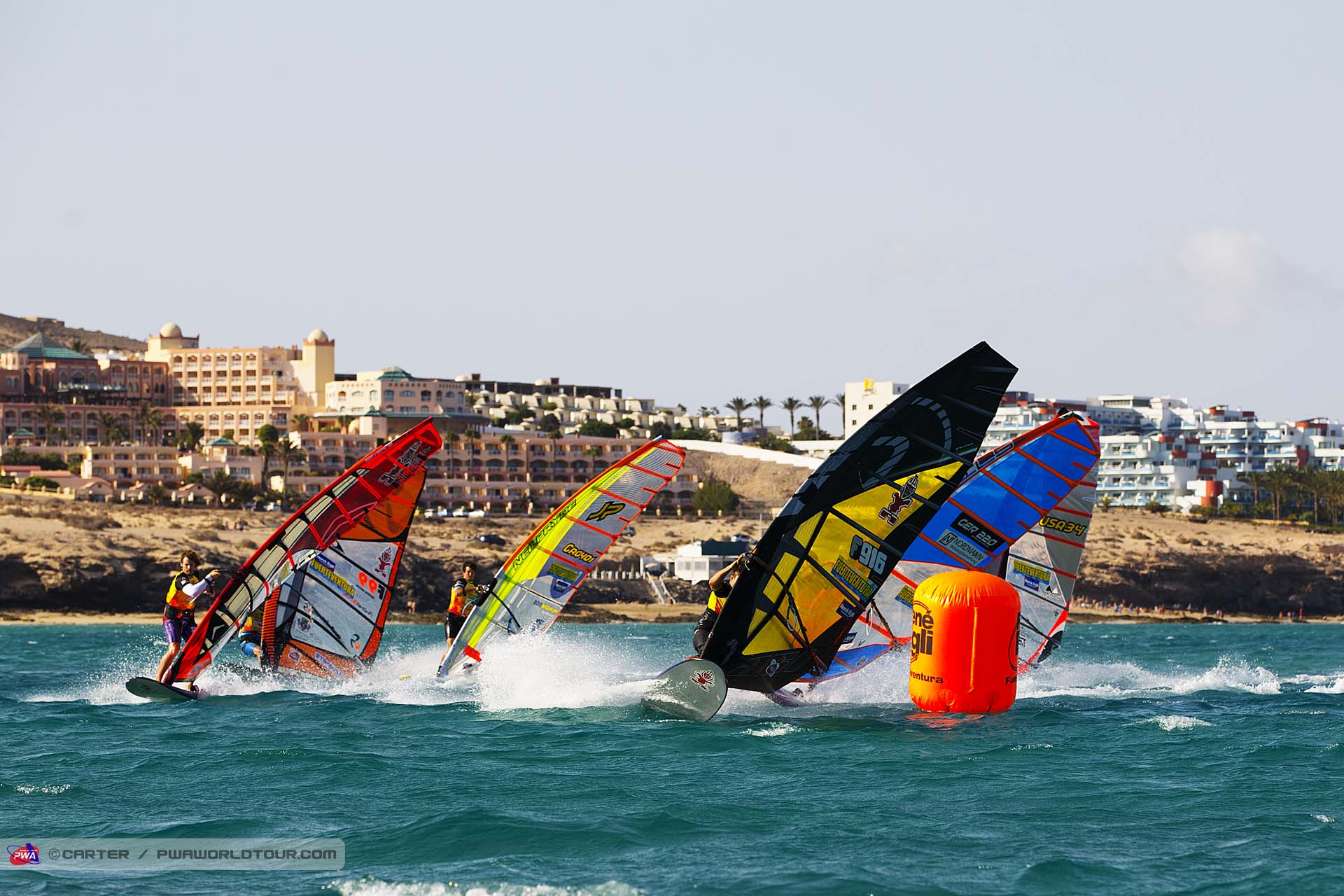 Après les inscriptions du matin place à l’action cet après midi avec 2 manches courues dans un vent léger de 12 à 20 nds. Les Français sont d’entrée de jeu aux avants postes et Pascal Toselli ouvre le bal en remportant le premier slalom devant Antoine Albeau et Cyril Moussilmani. Dans le second slalom c’est Josh Angulo qui empoche une belle victoire devant Pierre Mortefon et Matteo Iachino. Ce dernier pointe en tête au général au terme de la premiere journée avec 2 bonnes places de 4 et 3 suivi par Albeau et Tosseli. Mais les choses ne font que commencer!