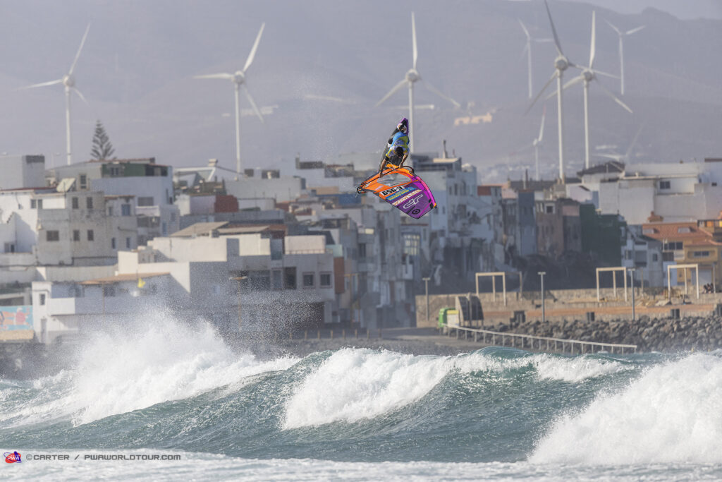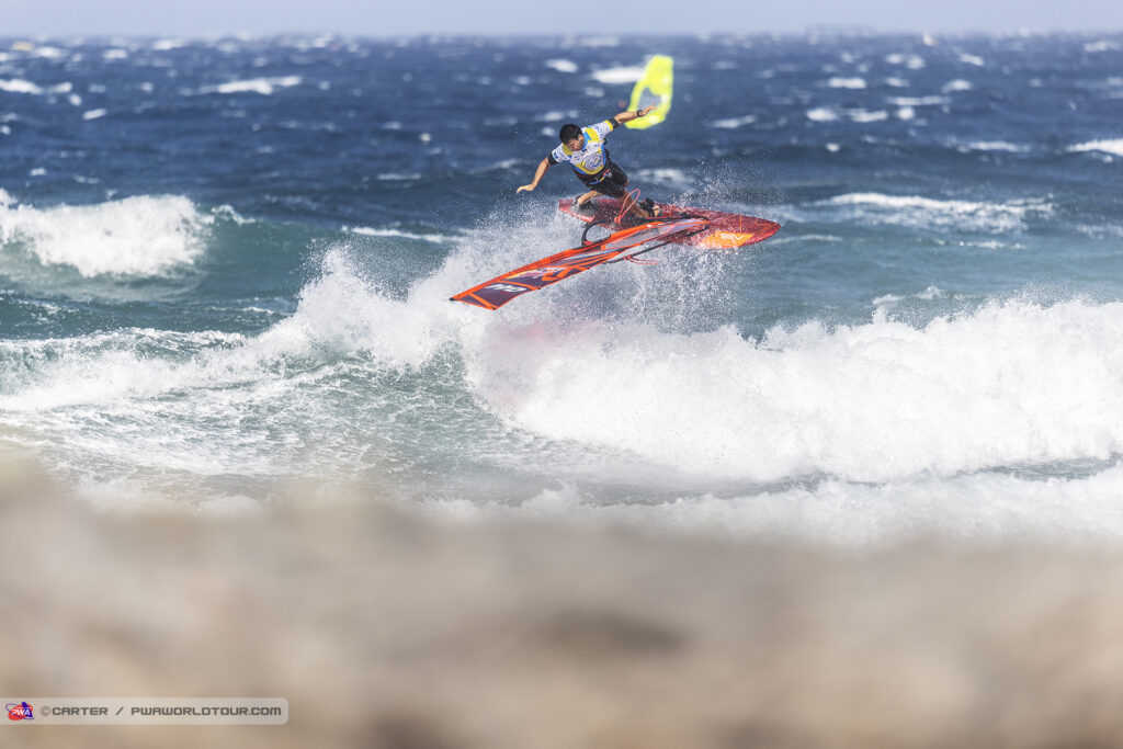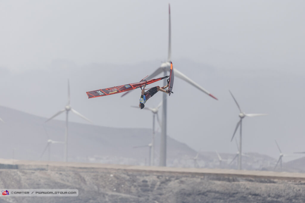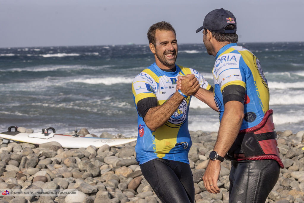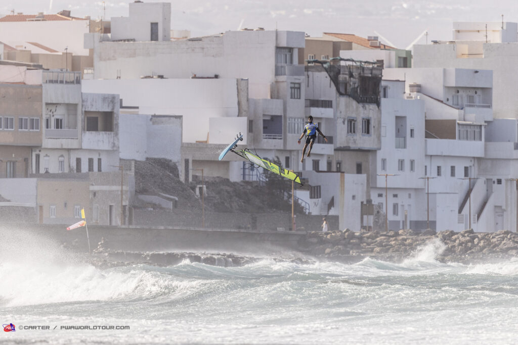 Il se retrouve une nouvelle fois face à Marcilio Browne qu’il avait battu l’an dernier mais cette saison le brésilien veut la victoire et déroule son répertoire tel un métronome pour se retrouver une nouvelle fois face à Köster. Cette finale tourne court pour le germano canarien qui au bout de quelques minutes perds son matos sur un départ de double forward et fini dans les rocks. C’est au pas de course dans les cailloux et galets qu’il court recuperer un nouveau materiel mais cela lui coutera cette premiere finale. Avec une finale gagnée chacun, la super finale s’enclenche avec un heat ultime prolongé à 16min. Cette fois Philip Köster joue sa partition sans faute avec double forward et push forward parfaits quand Browzhino peine à poser ses moves proprement. La messe est dite et Köster remporte une nouvelle fois cette étape PWA où les conditions etaient au rendez vous cette année.