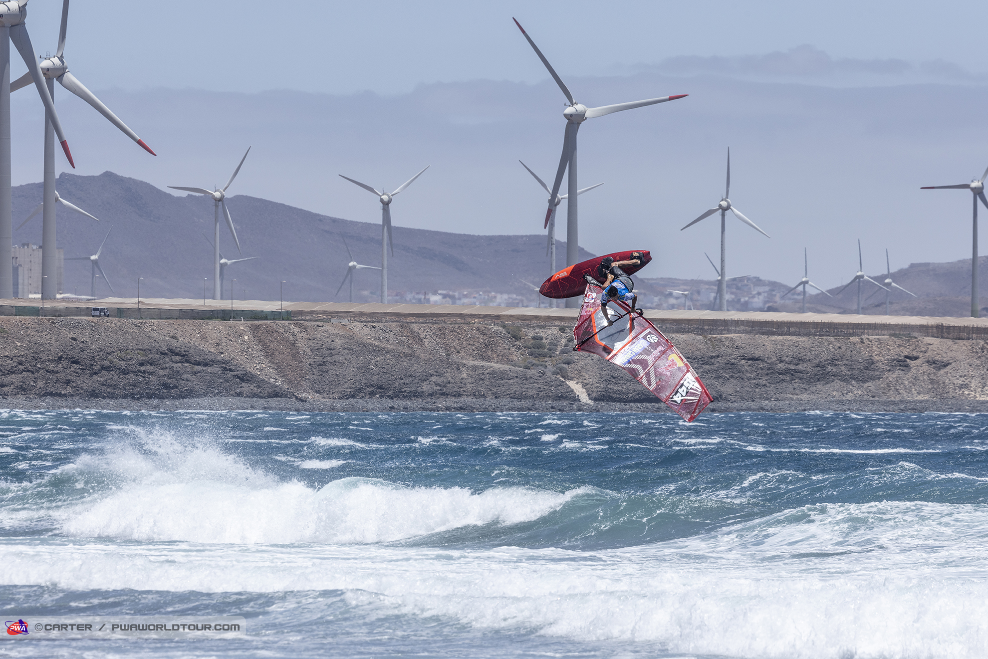 Contre toute attente l’allemand s’impose dans cette demi finale face à Philippe Koster et Liam Dunkerbeck. Julian est moins solide en saut que ses adversaires mais est néanmoins très fort en surf et sort son epingle du jeu sur le fil lors de ce heat. Cette victoire lui ouvre les portes de la finale!!