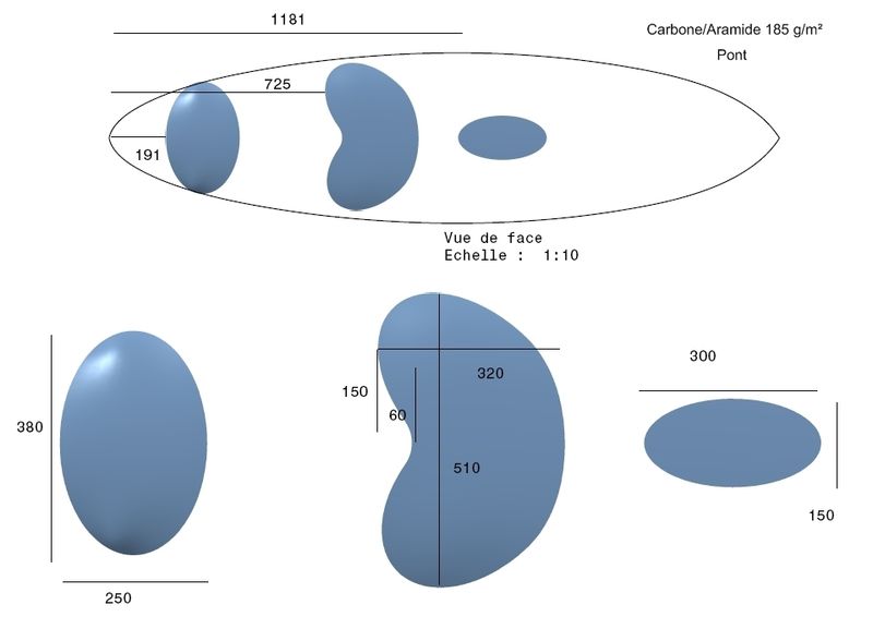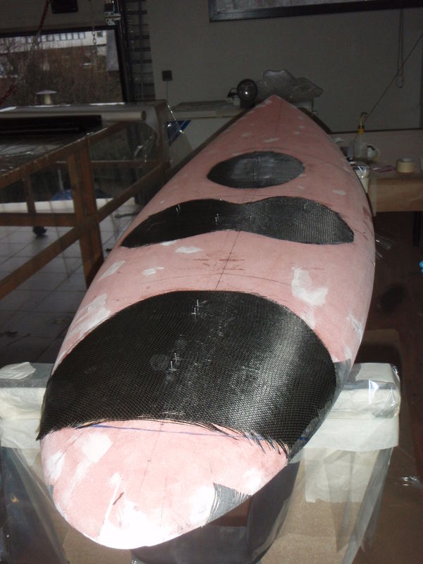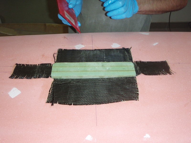 en superposition sur les patchs carbone et carbone-kevlar des ailerons.